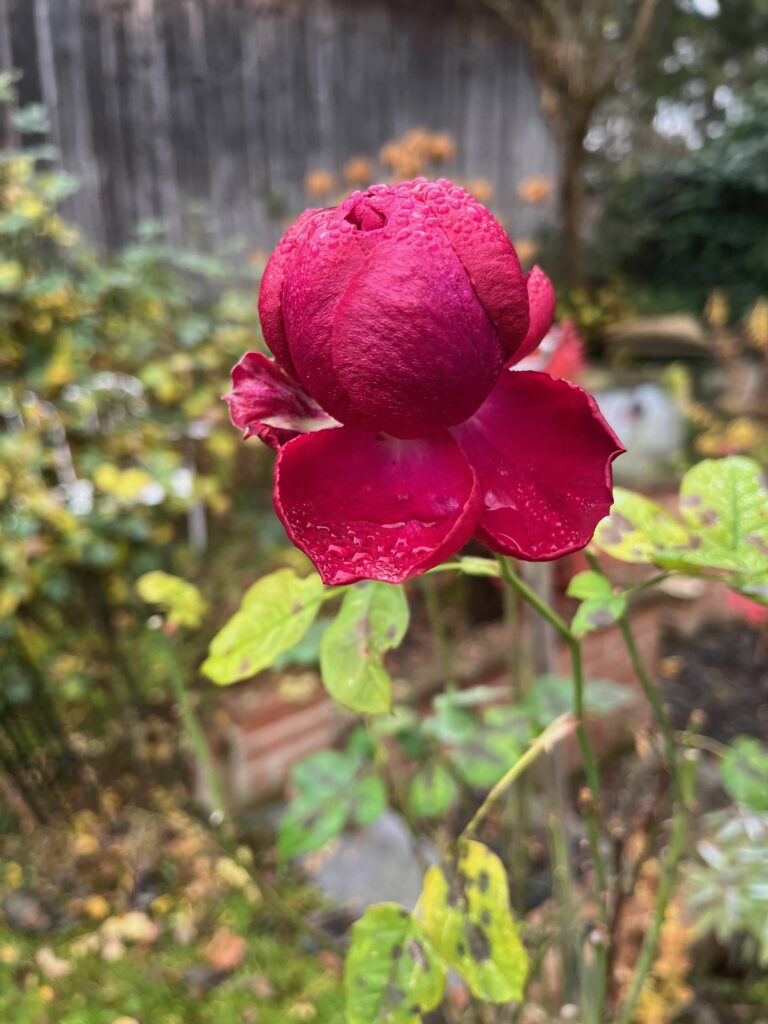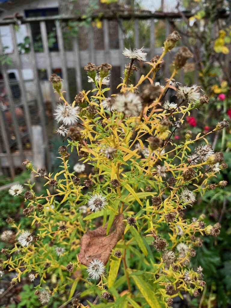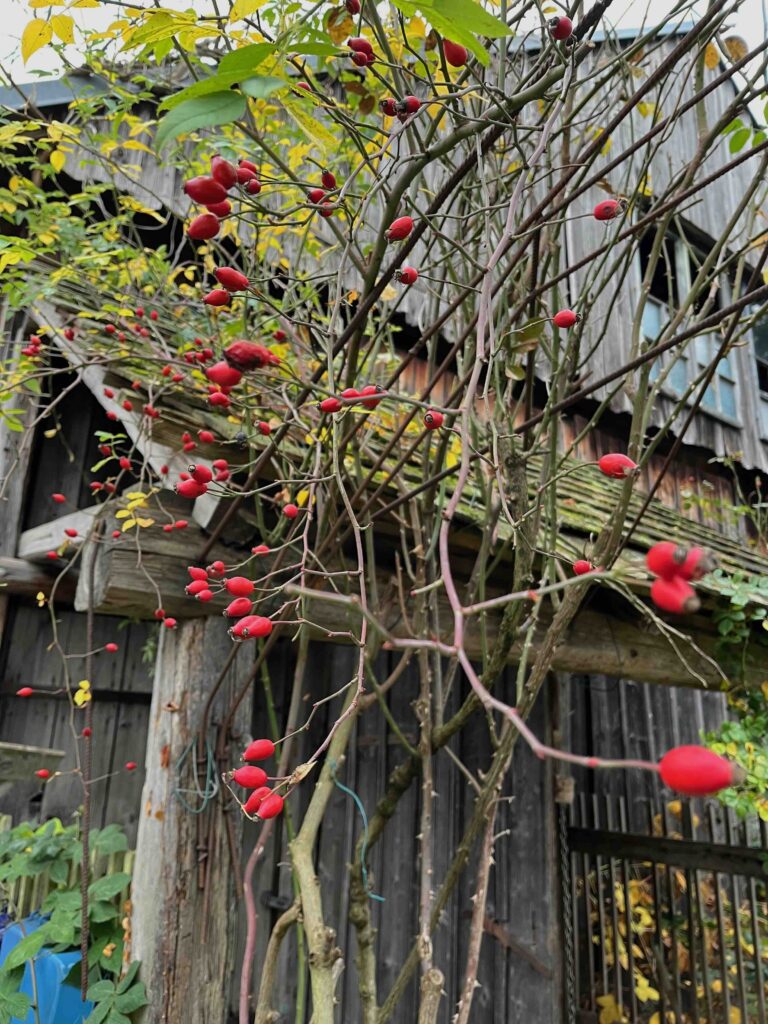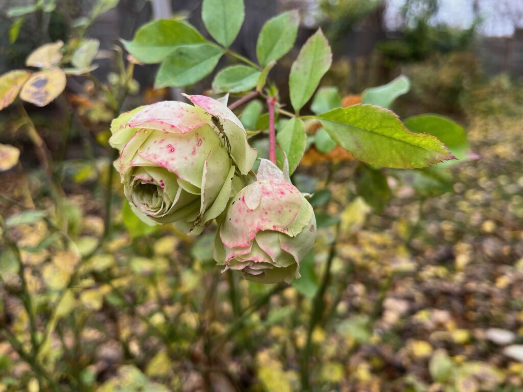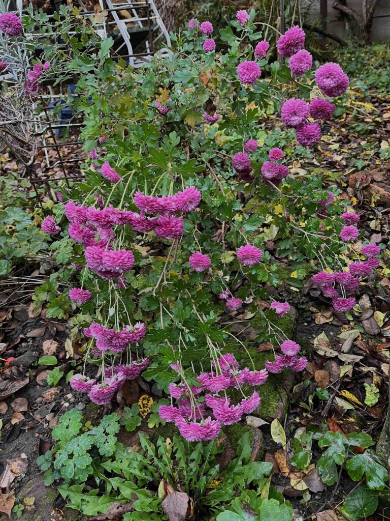 As every year, a few roses are defying the cold, and a few late autumn flowers are still blooming.